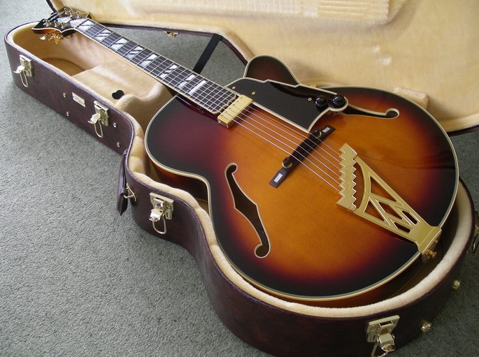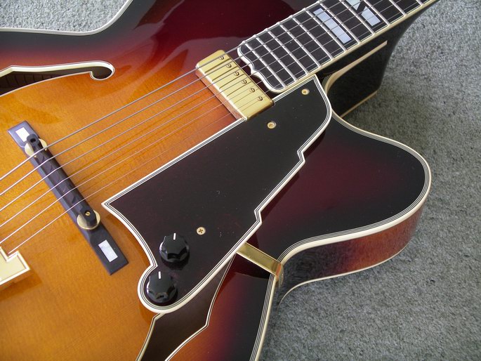 Mother of pearl D'Angelico Logo and New Yorker inlays on