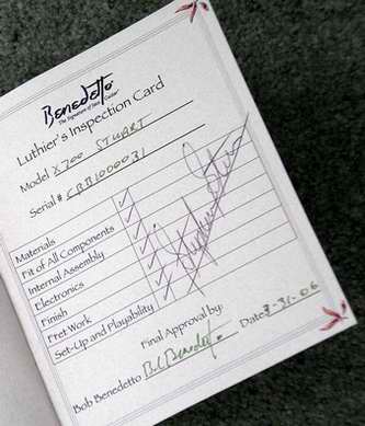 Inlaid Abalone Benedetto Logo at 19th Fret,