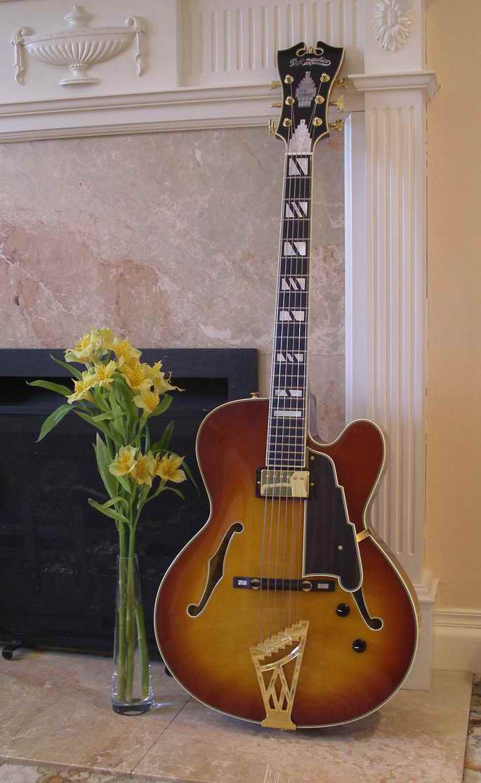 Mother of pearl D'Angelico Logo and New Yorker inlays on