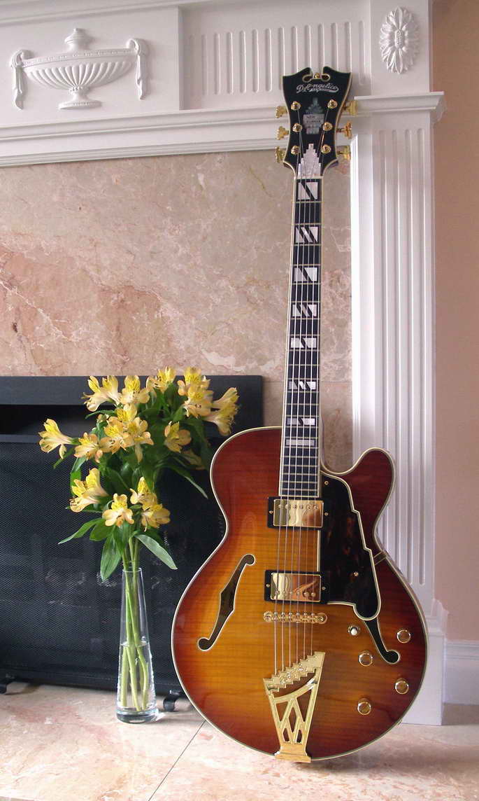 Mother of pearl D'Angelico Logo and New Yorker inlays on